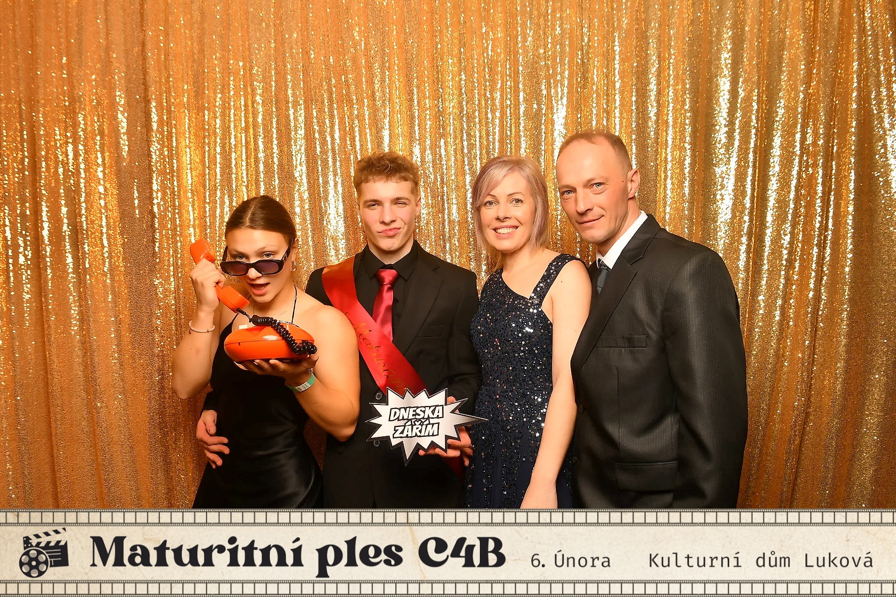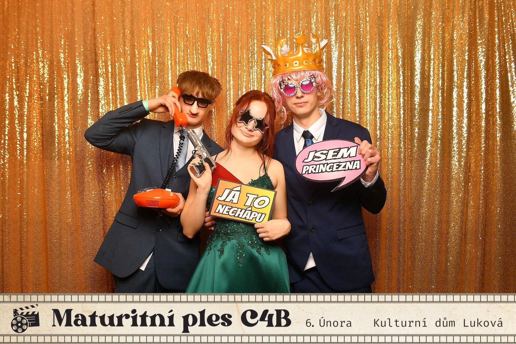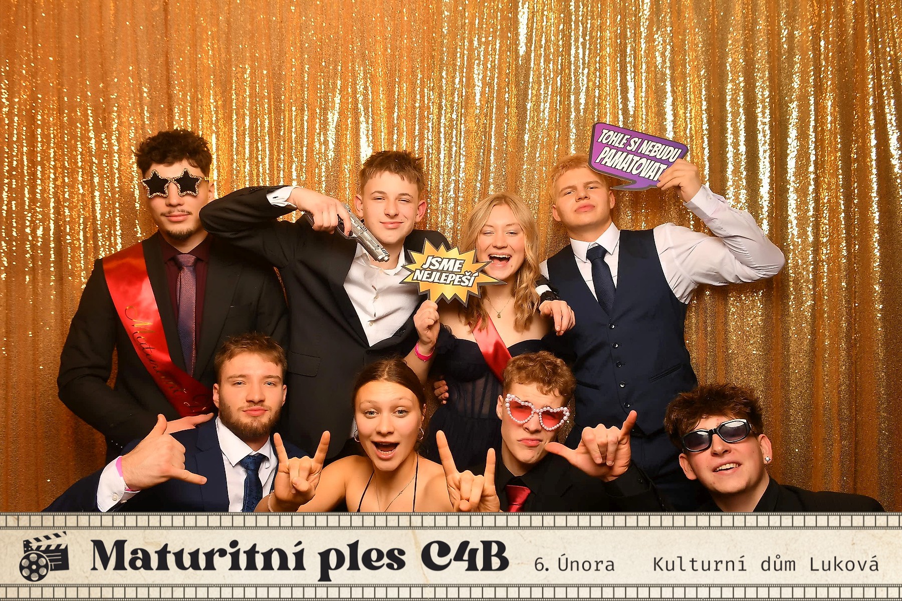V pátek 6. února 2026 jsme realizovali focení maturitního plesu pro Střední školu Ministerstva obrany. Součástí večera byl také fotokoutek se zlatým pozadím, který jsme zajistili speciálně pro maturitní třídu (četu).